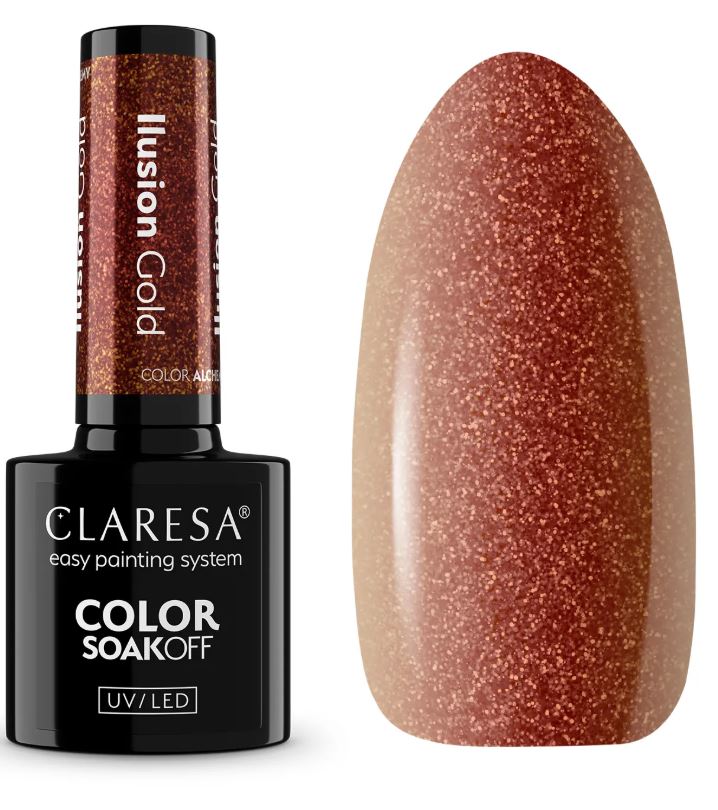 Hipnotyzujący, wielowymiarowy złoty odcień, który zmienia się od miedzi po ciepłe, świetliste złoto. Efekt Ilusion tworzy wrażenie płynnego metalu, który mieni się przy każdym ruchu dłoni. Idealny dla osób kochających spektakularny, biżuteryjny połysk.
