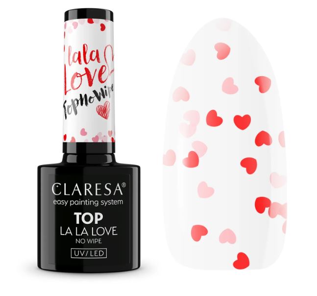 Serduszka są delikatnie zatopione w transparentnej bazie, dzięki czemu top doskonale komponuje się z każdym kolorem z kolekcji, dodając manicure romantycznego i wyjątkowego charakteru.