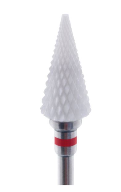 Frez ceramiczny stożek FRC500-20 w czerwonej gradacji to profesjonalne narzędzie wykonane z wytrzymałej ceramiki cyrkonowej, przeznaczone do precyzyjnej, bezpiecznej i komfortowej pracy w manicure oraz pedicure.